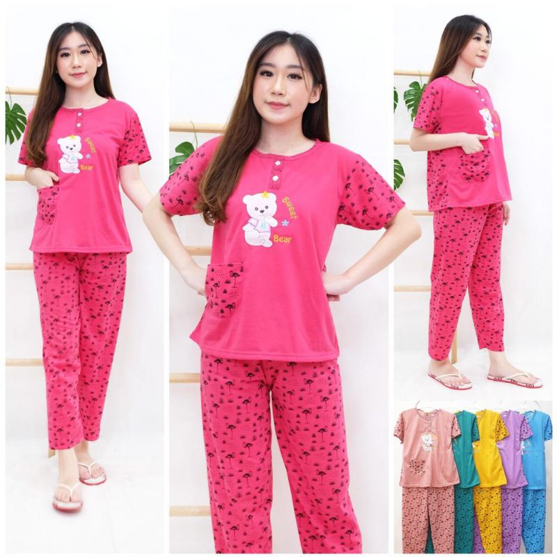 Super sale baju tidur remaja babydoll piyama setelan kaos 3/4 dewasa kekinian ン.